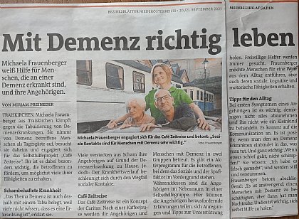 Mein Name ist Michaela Frauenberger und ich freue mich, als Verantwortliche und Leitung der Angehörigengruppe das Café Zeitreise Traiskirchen vorstellen zu dürfen: